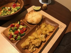 Heat a little oil in a vessel. Add cumin or pachforan seeds and see them splutter. Add bay leaf, dry red chilli , little ginger paste and saute.